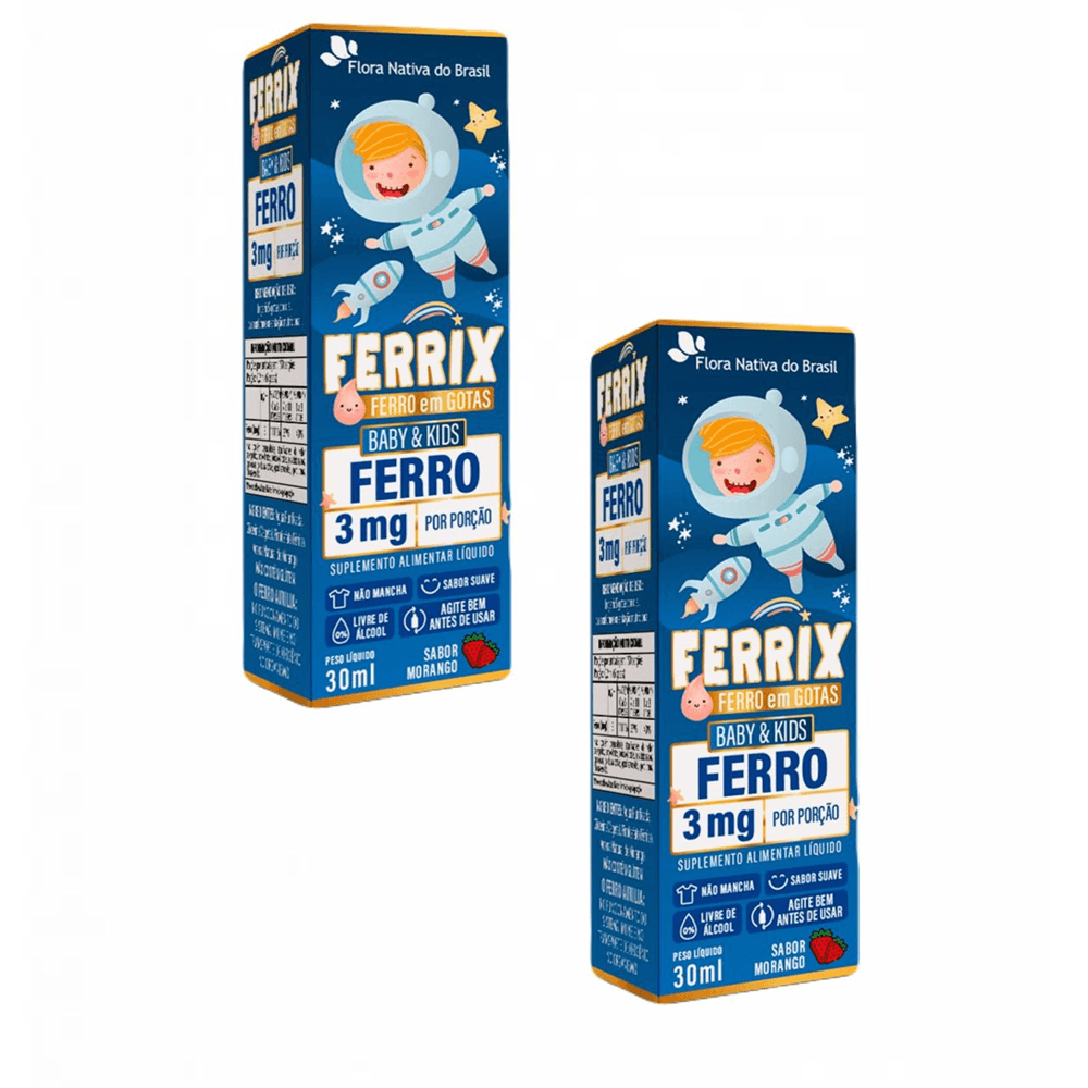 2x Ferrix Ferro Em Gotas Kids Flora Nativa Morango 30ml