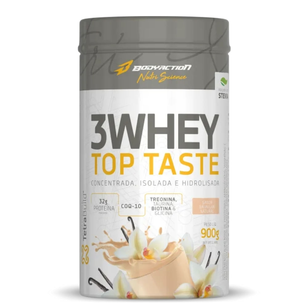 3 Whey Protein Top Taste + Bcaa Sabor Baunilha Body Action 900g