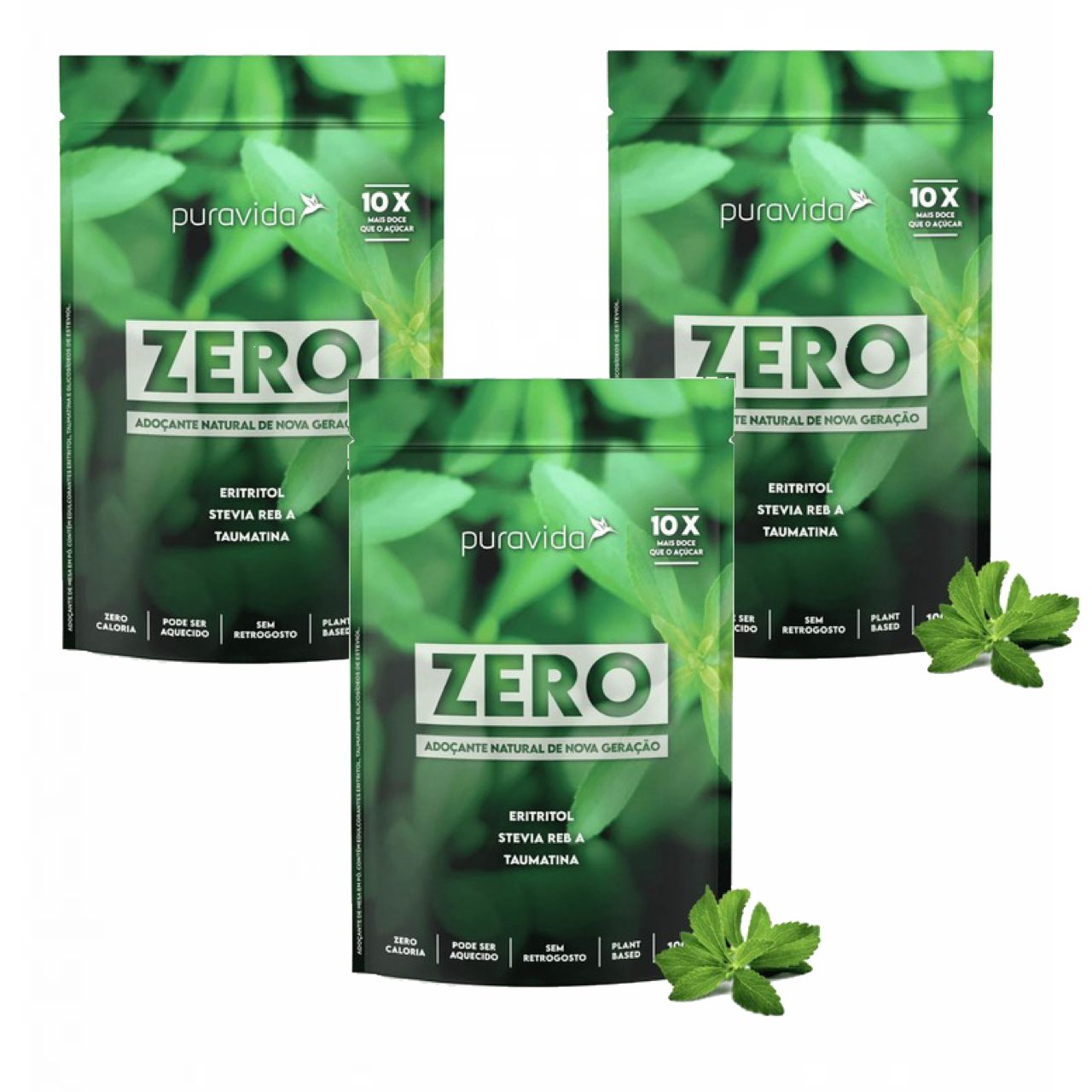 3x Adoçante Zero Premium Puravida-100g- Stevia- Taumatina