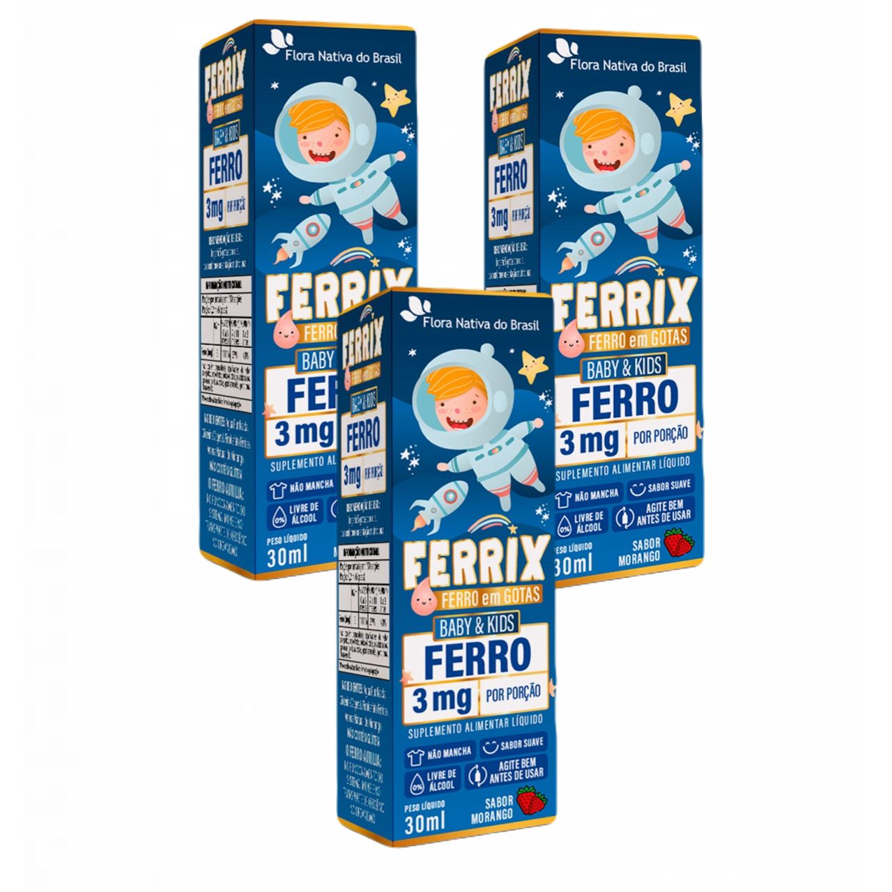 3x Ferrix- Ferro Em Gotas Kids- 30ml- Flora Nativa- Morango