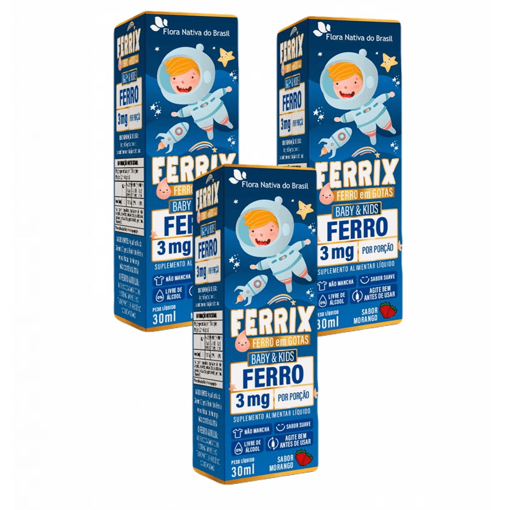 3x Ferrix Ferro Em Gotas Kids Flora Nativa Morango 30ml
