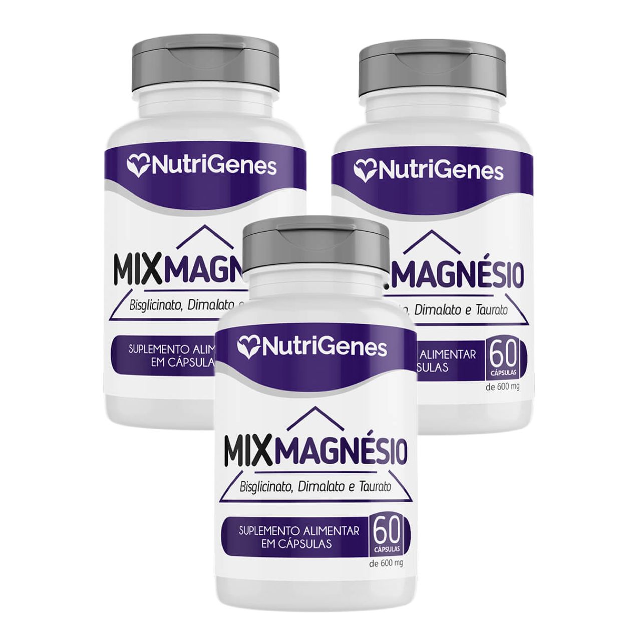 MIX MAGNÉSIO. Kit contendo 3 frascos de 60 cápsulas cada.