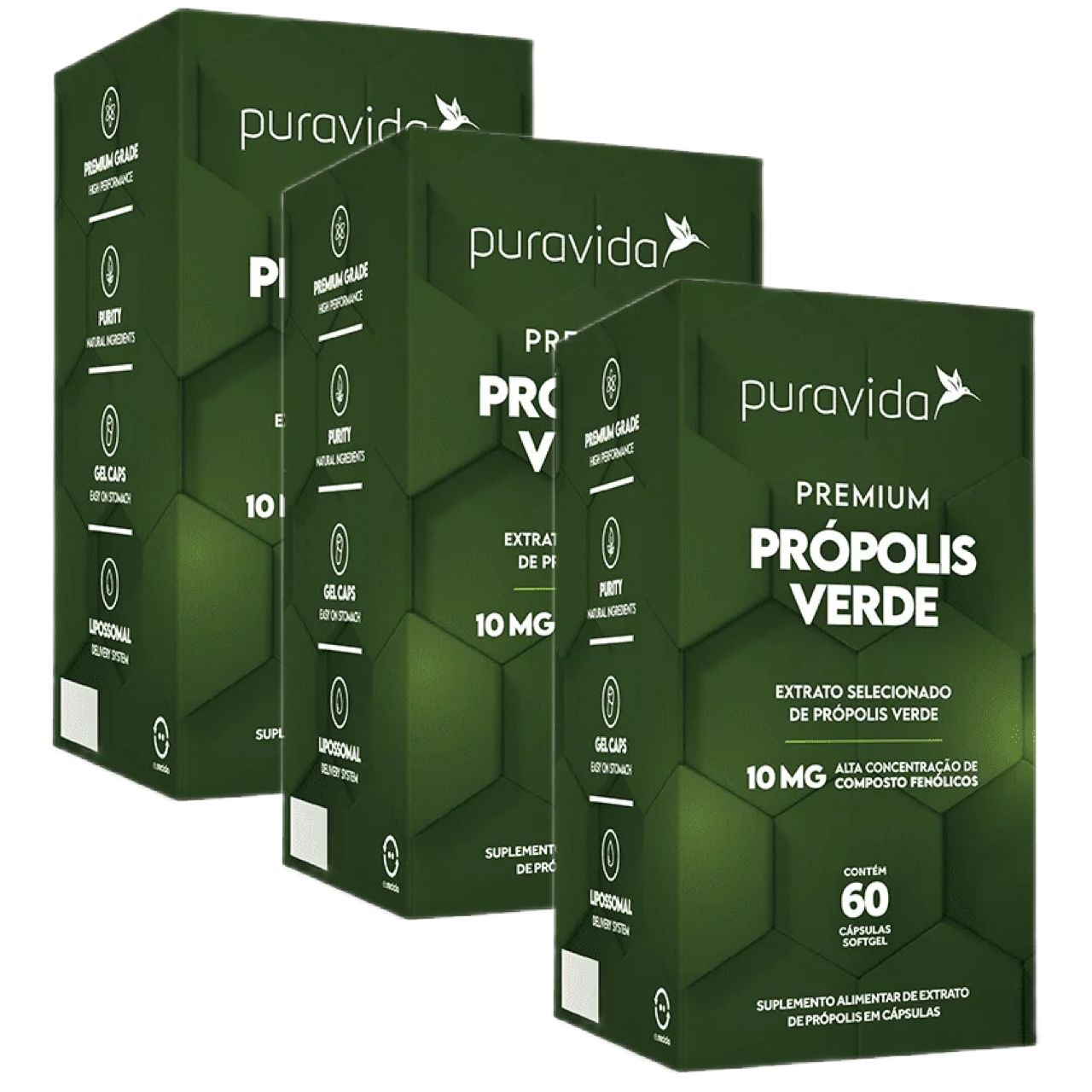 3x Própolis Verde Pura Vida 10mg Compostos Fenólicos 60 Caps