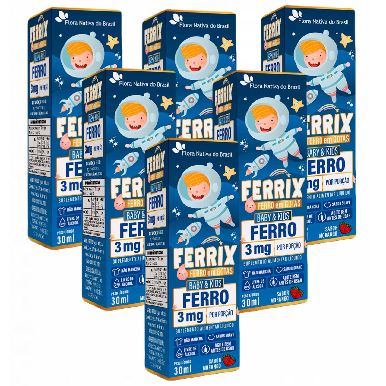 6x Ferrix- Ferro Em Gotas Kids- 30ml- Flora Nativa- Morango