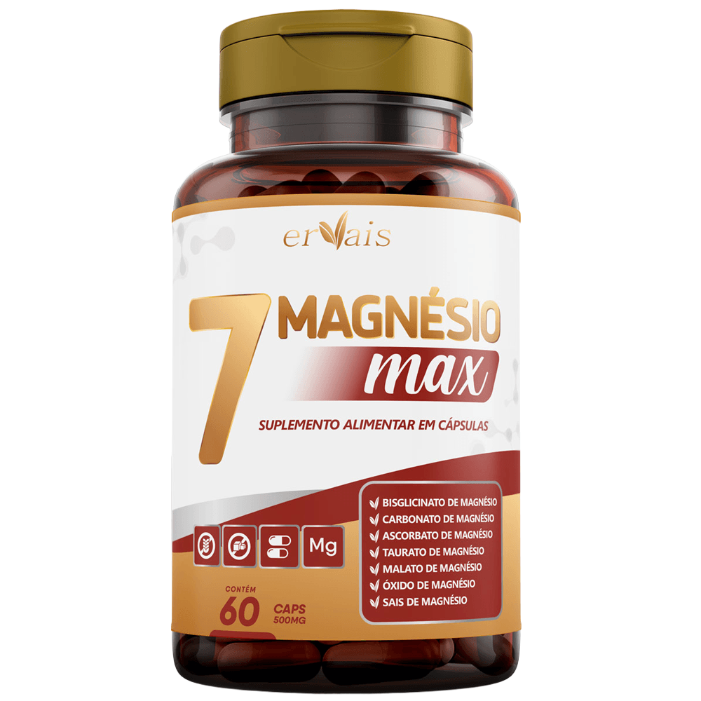 7 Magnésio Max Óxido Bisglicinato Malato Carbonato Taurato Ascorbato 60 Cápsulas