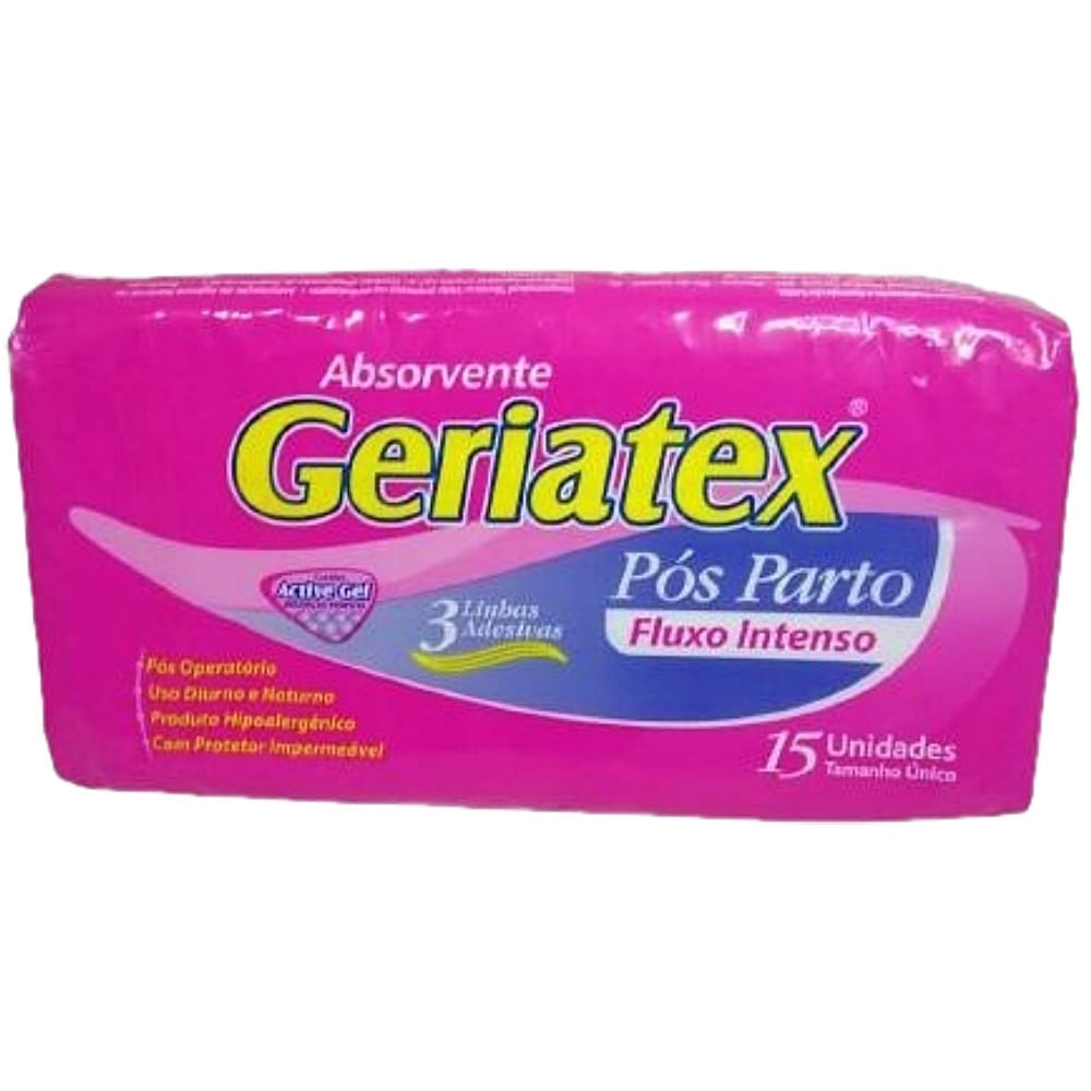 - Absorvente Pós Parto Geriatex é um produto de higiene pessoal para adultos