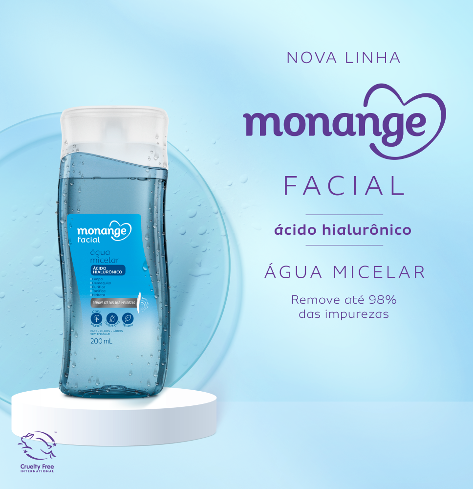 A Água Micelar Monange limpa profundamente, demaquila, purifica, tonifica e hidrata a pele por até 24 horas. Com ativos vegetais e sendo livre de óleos, ela garante uma pele mais suave, equilibrada e iluminada.