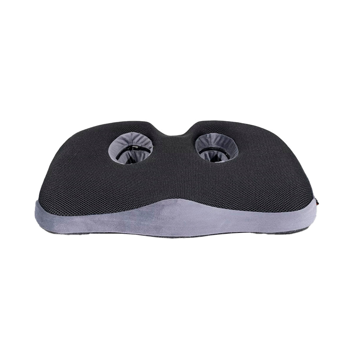 Suas características ergonômicas, com dois orifícios para encaixe perfeito da região Isquiática e um sulco para alívio de pressão do cóccix, além de ser feita com espuma de memória, tecido superior respirável e fundo antiderrapante, o que proporciona maior conforto e sensação de bem-estar.