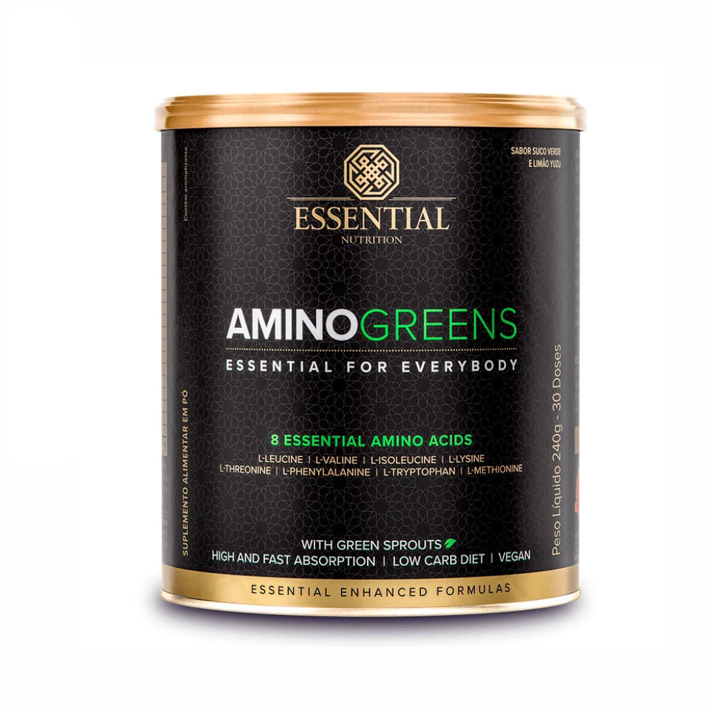 O Amino Greens Essential Nutrition 240g, é um suplemento fonte de 8 amino cidos essenciais na proporção ideal, precursores de proteínas, que conta com um blend vegetais orgânicos, incluindo plantas germinadas, incorporados a sua composição.
