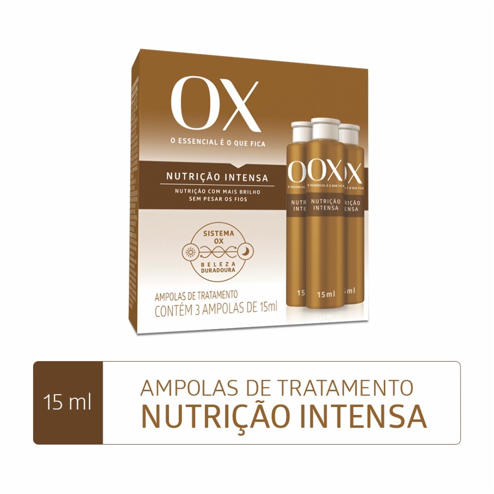 Ampola OX Oils Nutri infusion concentrado de tratamento, com complexo de óleos essenciais de calamo mirra e oliva intenso para todo os tipos de cabelos.