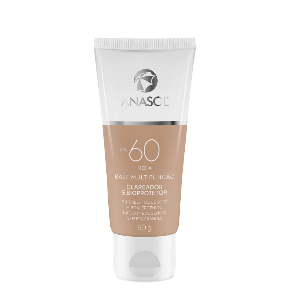 Anasol Base Média Multifunção FPS 60 60g Anasol Base Média Multifunção FPS 60 60g Uniformiza, possui ação clareadora e não obstrui os poros graças à sua fórmula oil free.