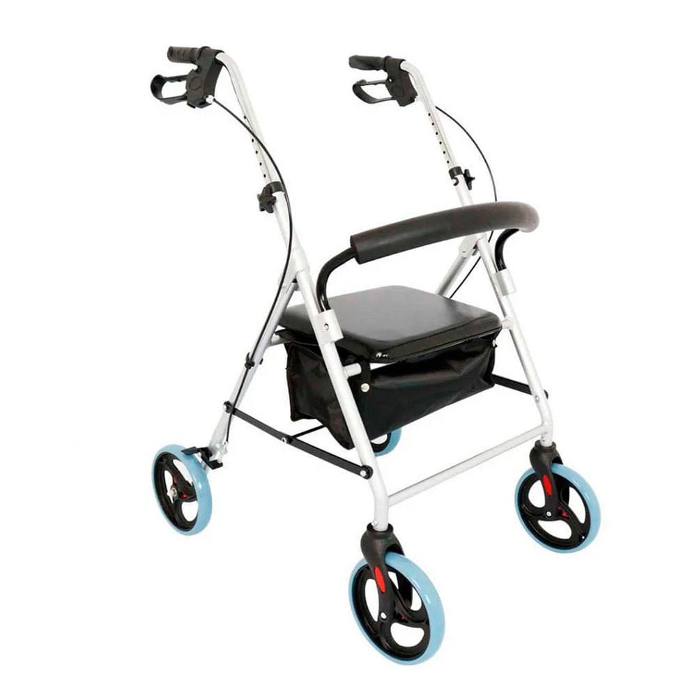 Andador De Alumínio Dobrável 4 Rodas Com Banco D12 Dellamed