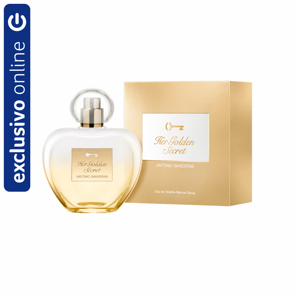 Her Golden Secret, de Antonio Banderas, possui notas de saída que destacam sua feminilidade com uma nota de coração floral que mescla delicadamente gardênia, flor de laranja e groselha preta. No fundo, as madeiras, o patchuli e a baunilha oferecem o caráter único de uma sedutora irresistível.