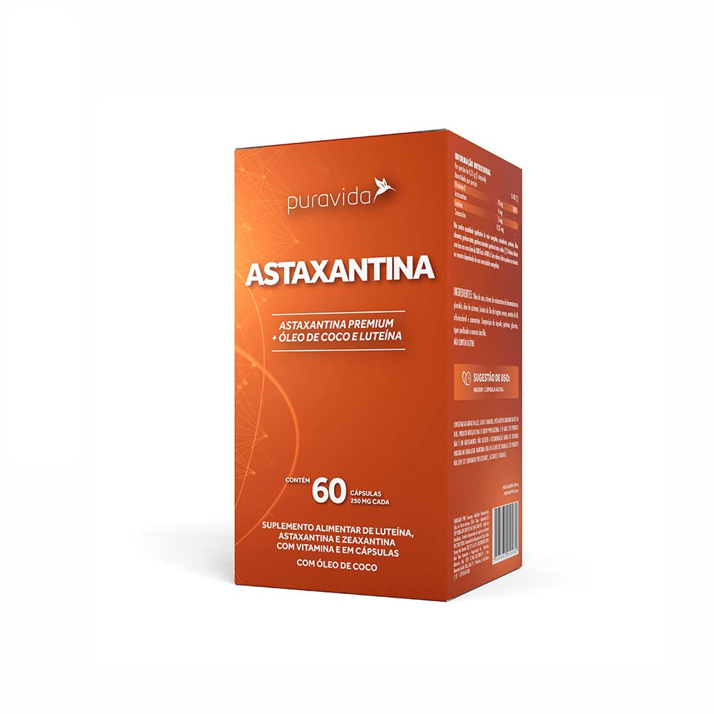 O Astaxantina, da Pura Vida, entrega somente em uma cápsula um extrato concentrado de Astaxantina, um pigmento avermelhado sintetizado por uma microalga marinha e alto teor de vitamina E.