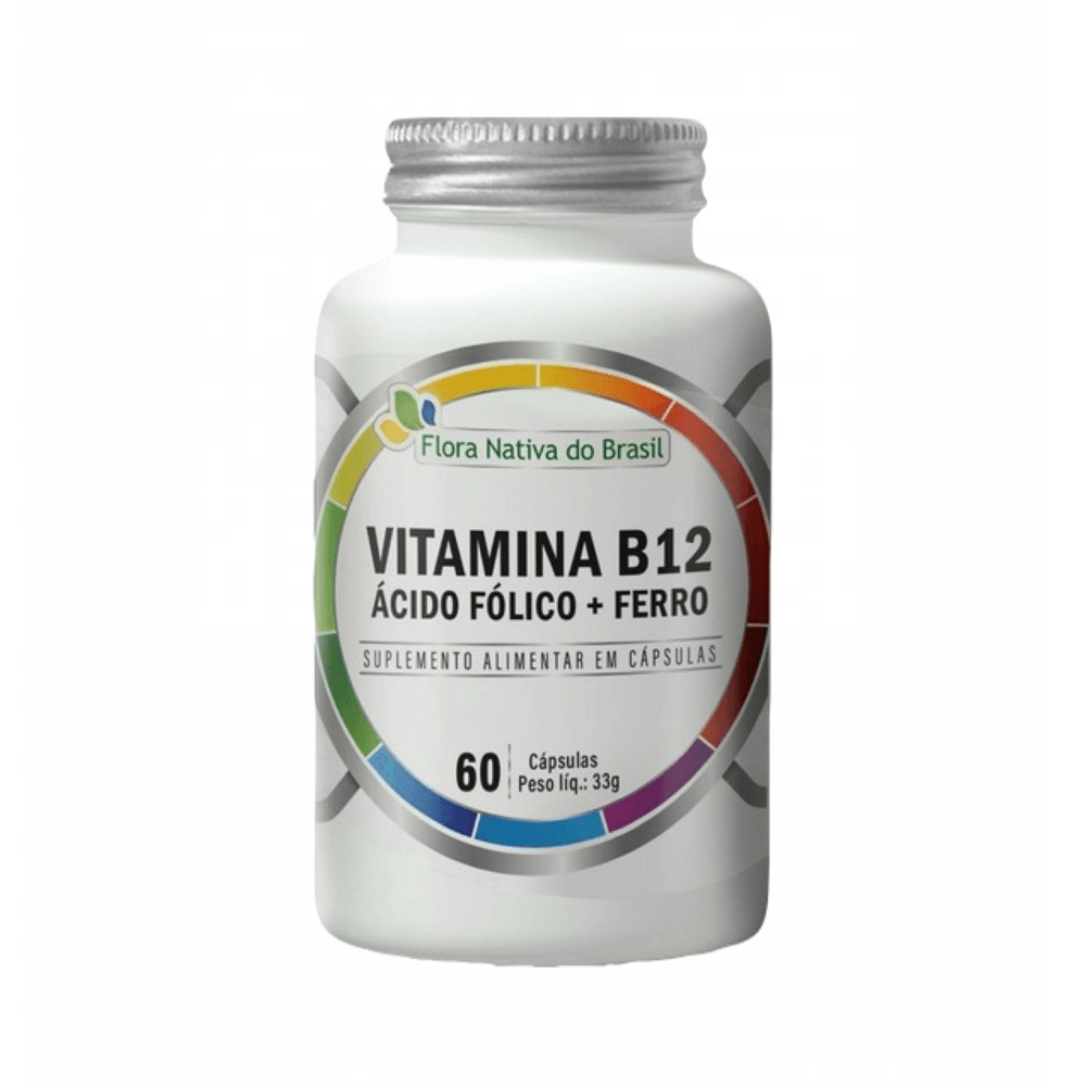B12 METILCOBALAMINA - ÁCIDO FÓLICO - FERRO. Recomendação de uso do Fabricante: 01 cápsula ao dia, preferencialmente 1 hora após almoço ou jantar, ou conforme orientação profissional.Informação Nutricional: Ferro 14mg (100% VD); Ácido Fólico 600mcg de DFE (150% VD); Vitamina B12 9,5mcg (396% VD*) - Percentual de valores diários fornecidos pela porção.Ingredientes: Bisglicinato Ferroso, Metilcobalamina (Vitamina B12), Ácido Fólico, Silicato de Magnésio (INS 553i), Dióxido de Silício (INS 551). Composição da cápsula: Gelatina. NÃO CONTÉM GLÚTENAtenção: Este produto não é um medicamento. Não exceder a recomendação diária do fabricante do produto. Sempre consumir com supervisão médica.