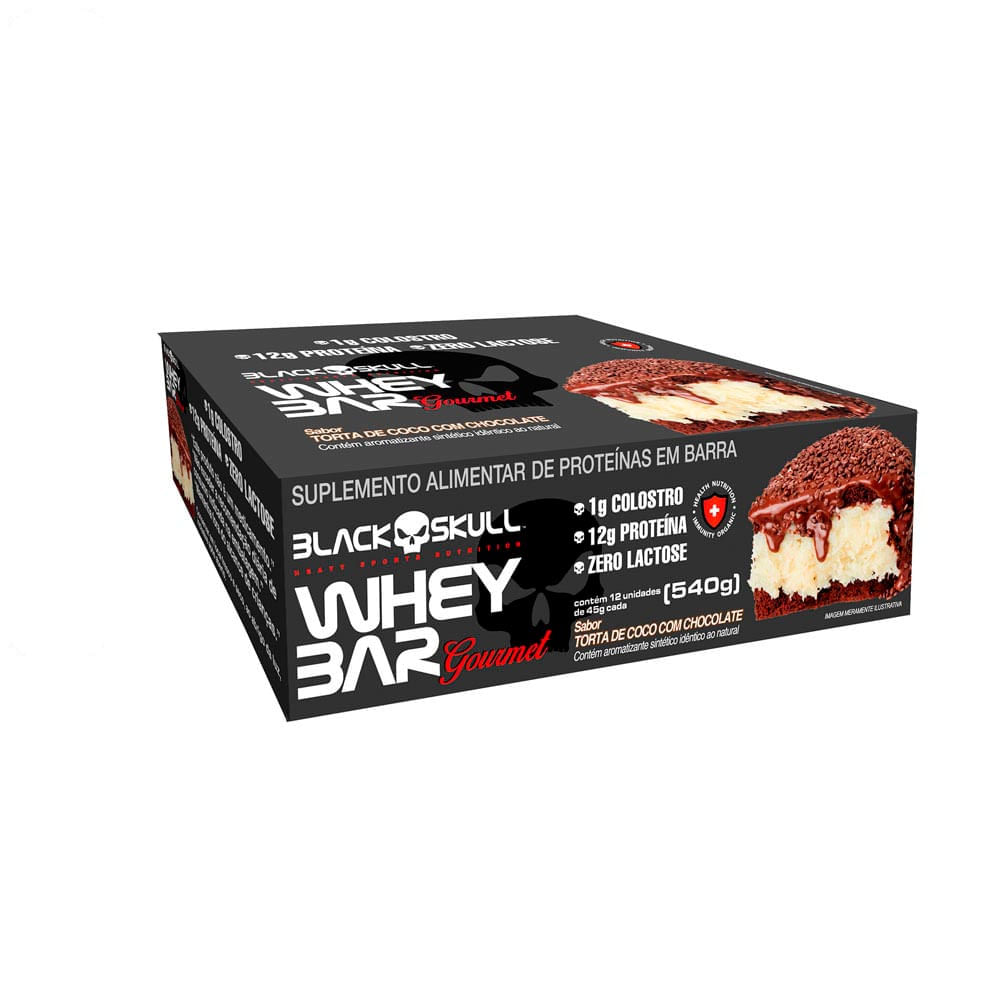 Barrinha Proteica Gourmet Com Colostro Black Skull 12 Unidades Sabor Coco