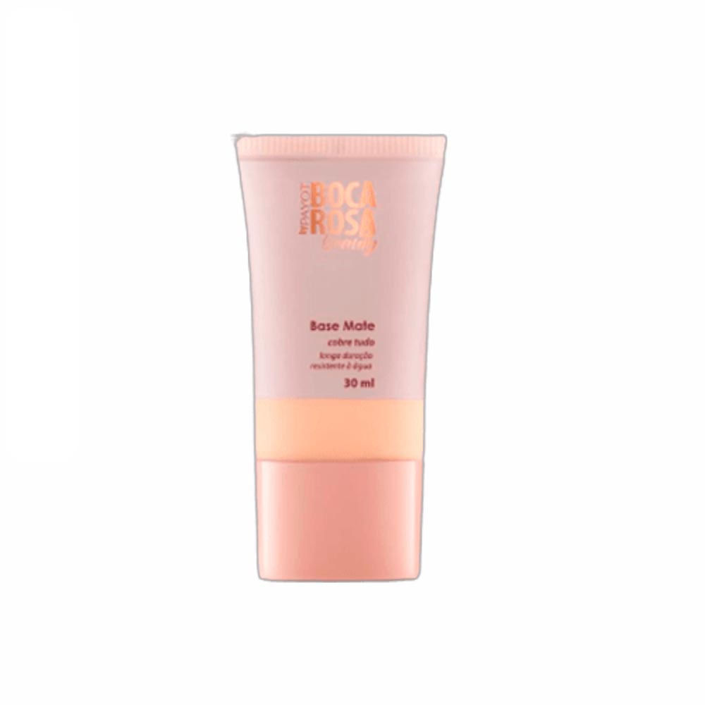 Aplique a sua Boca Rosa base com o auxílio de um pincel ou esponja por toda a face. Caso queira uma cobertura ainda mais alta, passe a primeira camada, espere secar e reaplique o produto.