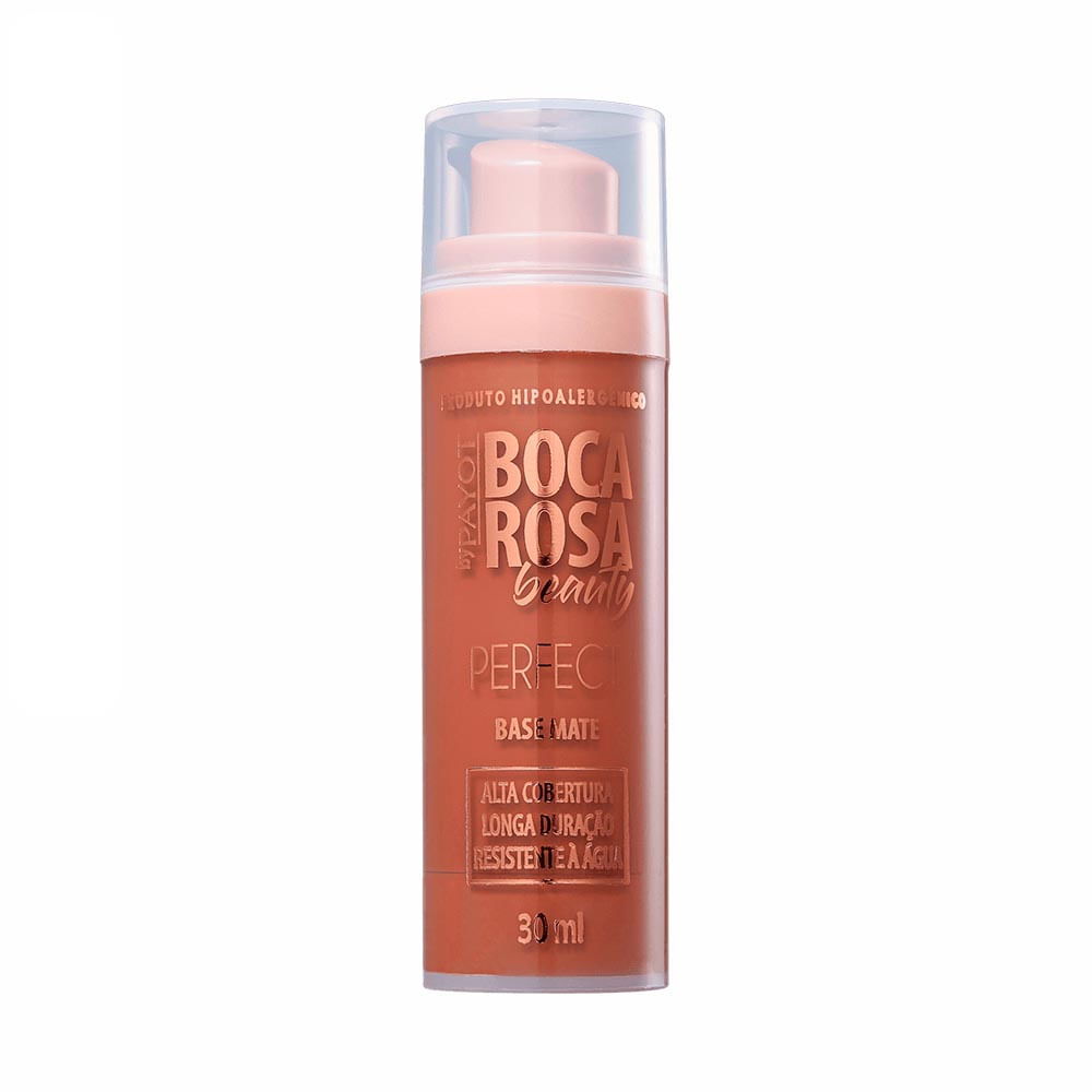 Base líquida com acabamento matte. Hipoalergênica, Payot Boca Rosa Beauty oferece alta cobertura e permite construir camadas na make.