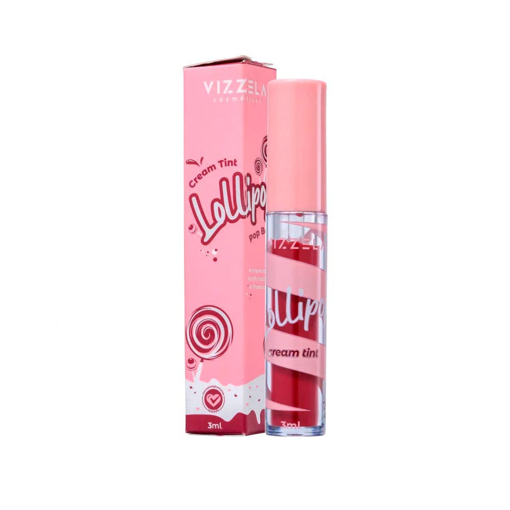 Cream tint. Com lindas cores, Vizzela Cosméticos Lollipop pode ser usado para destacar os lábios ou dar um toque corado às maçãs do rosto com efeito natural.