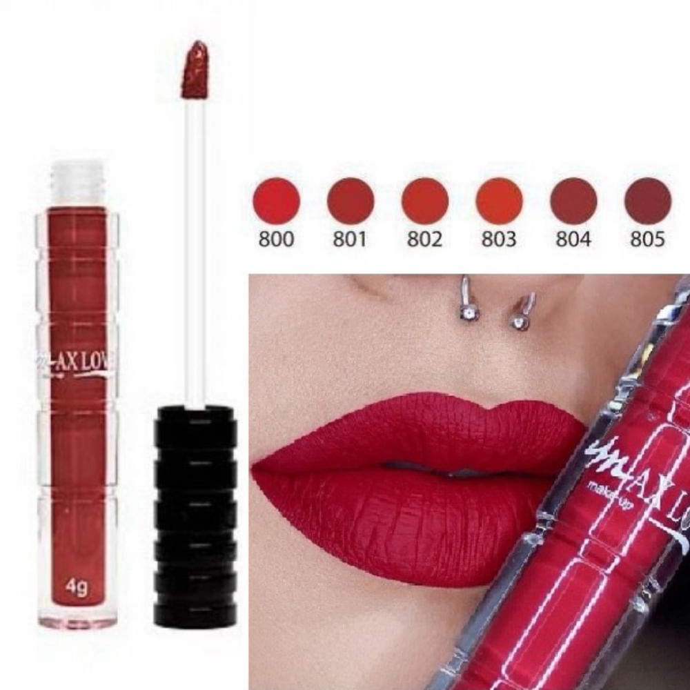O Batom Líquido Cremoso Max Love tem textura leve e acabamento cremoso.