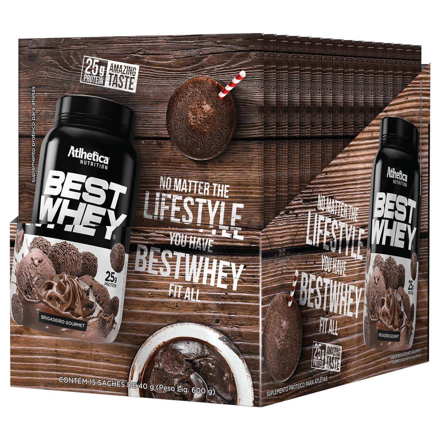 Best Whey Protein Brigadeiro Gourmet Atlhetica Nutrition Display 15 Sachês De 40g