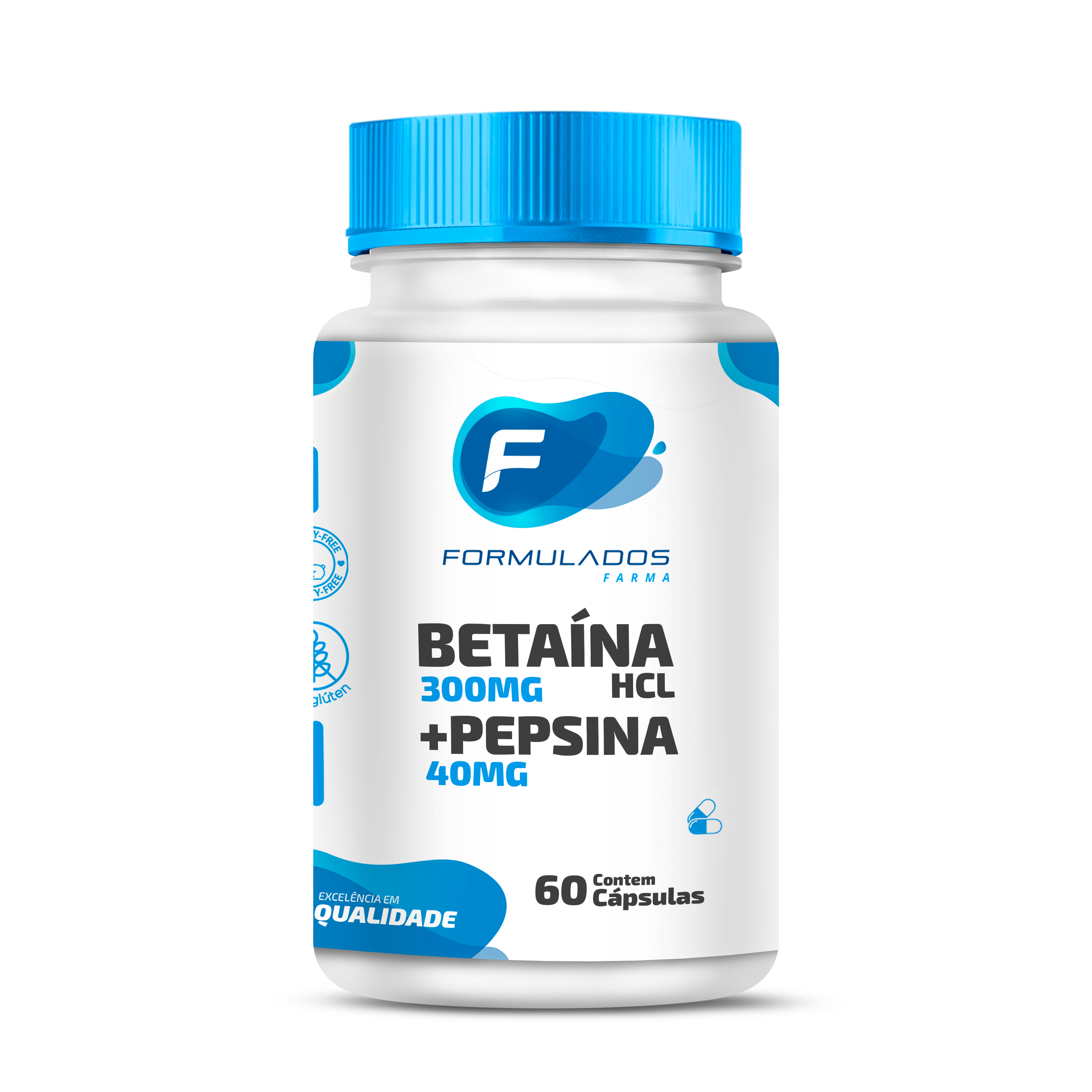 Betaína Hcl 300mg + Pepsina 40mg 60 Cápsulas