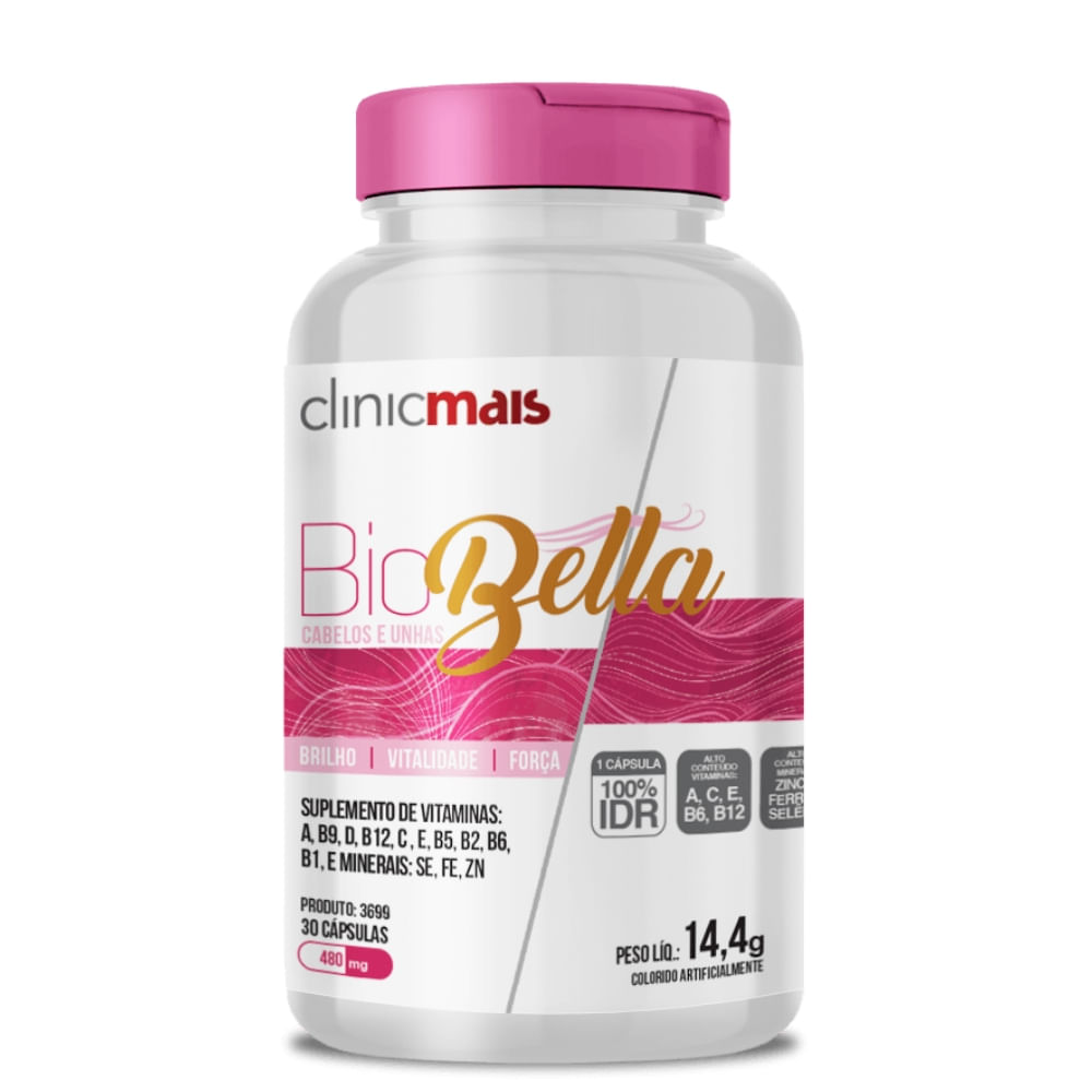 O BioBella Cabelos e Unhas ClinicMais é um suplemento vitamínico desenvolvido especialmente para a saúde e beleza feminina. Com uma fórmula completa, que reúne 11 vitaminas e 3 minerais essenciais, ele ajuda a combater deficiências nutricionais que podem causar queda de cabelo, unhas fracas, fadiga e problemas de pele. Ideal para complementar uma rotina saudável, o BioBella promove a manutenção da vitalidade dos cabelos, unhas e pele, contribuindo para o bem-estar no dia a dia.