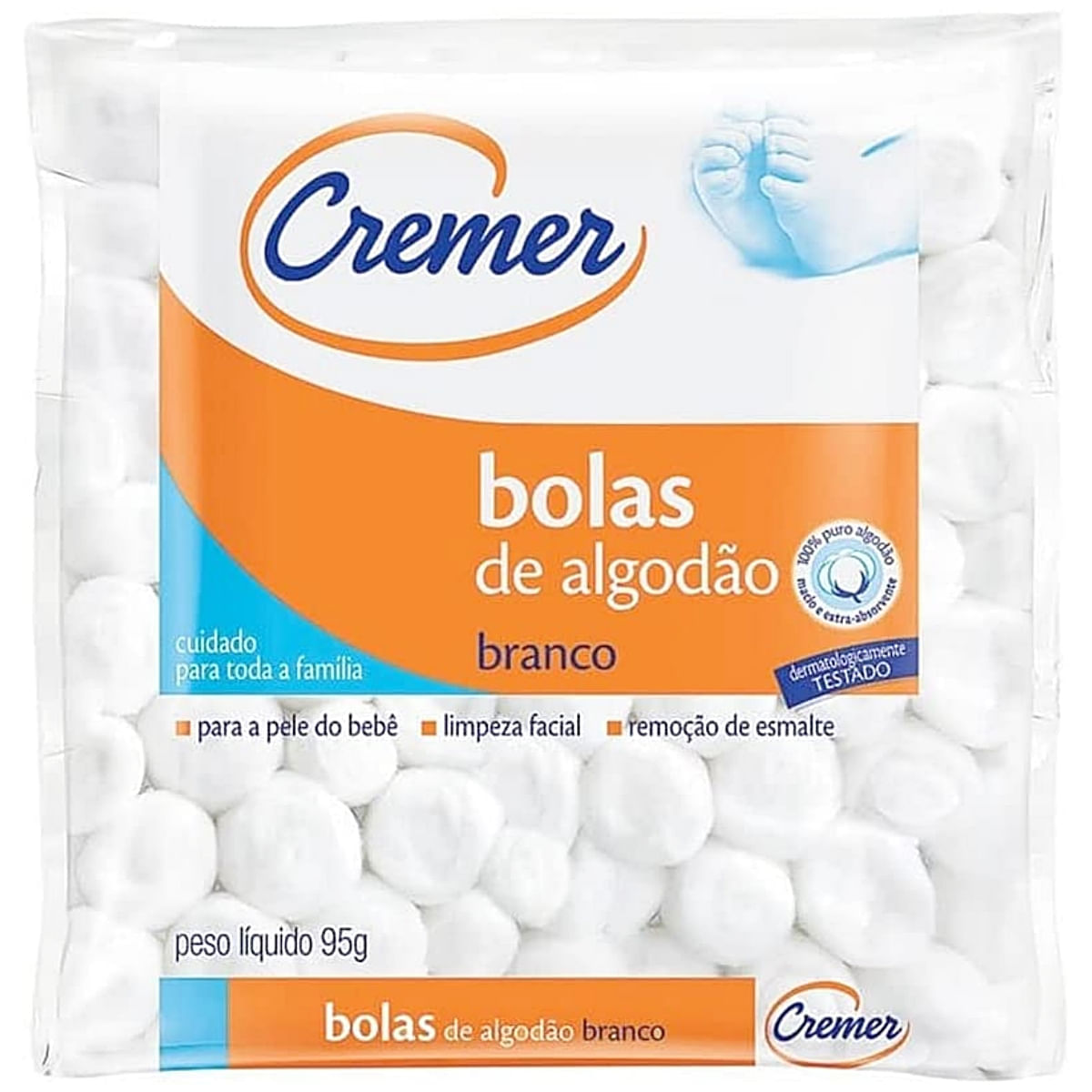 As Bolas de Algodão Cremer são confeccionadas com fibras 100% algodão, proporcionando uma opção macia e com excelente poder de absorção. Seu formato arredondado é ideal para a limpeza da pele do bebê, além de ser eficaz na remoção de esmaltes e cosméticos.