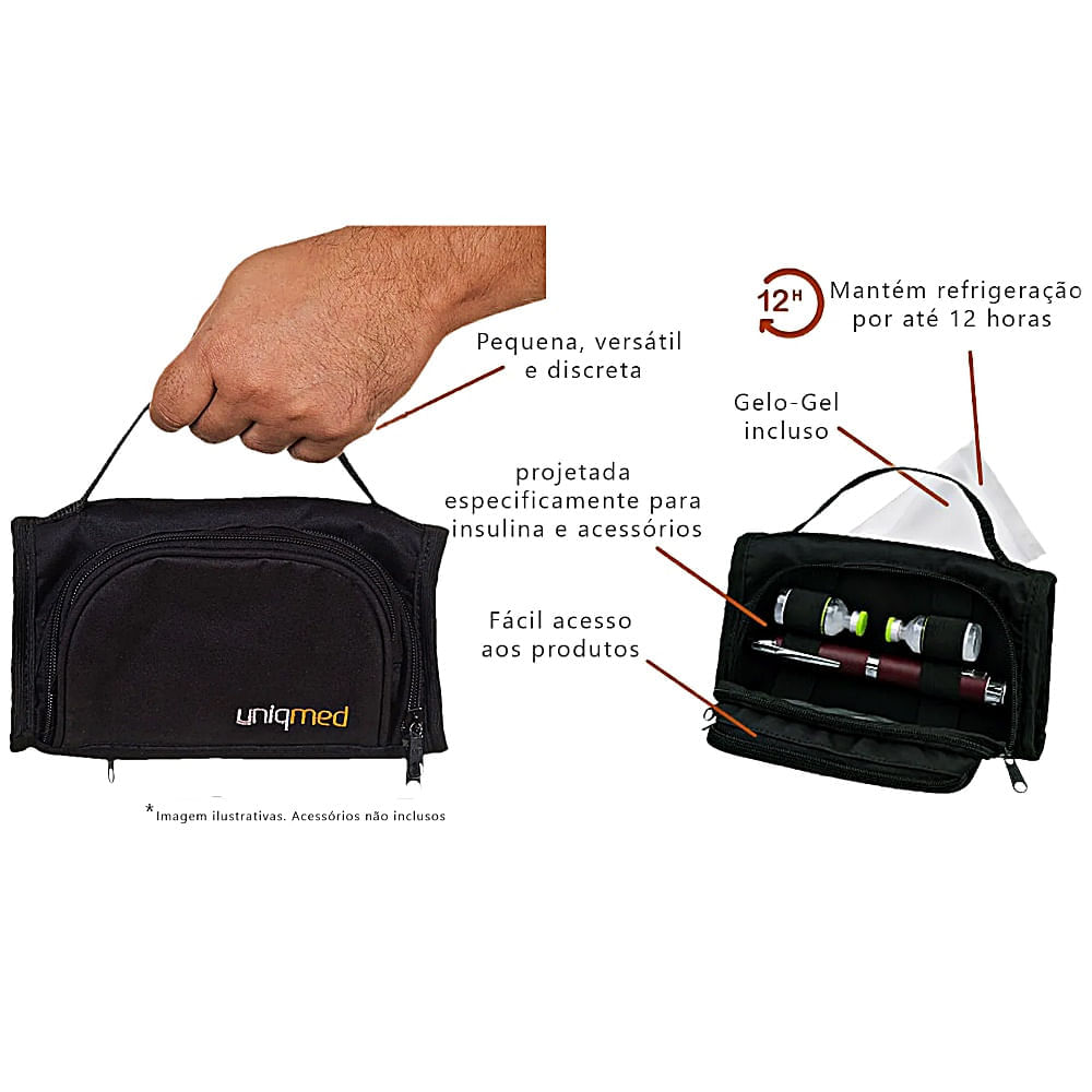 Bolsa para Transporte e Armazenamento de Insulinae Acessórios UniqmedDesenvolvida para atender a todos os estilos de vida e trazer maior segurança para medicamentos sensíveis à temperatura
