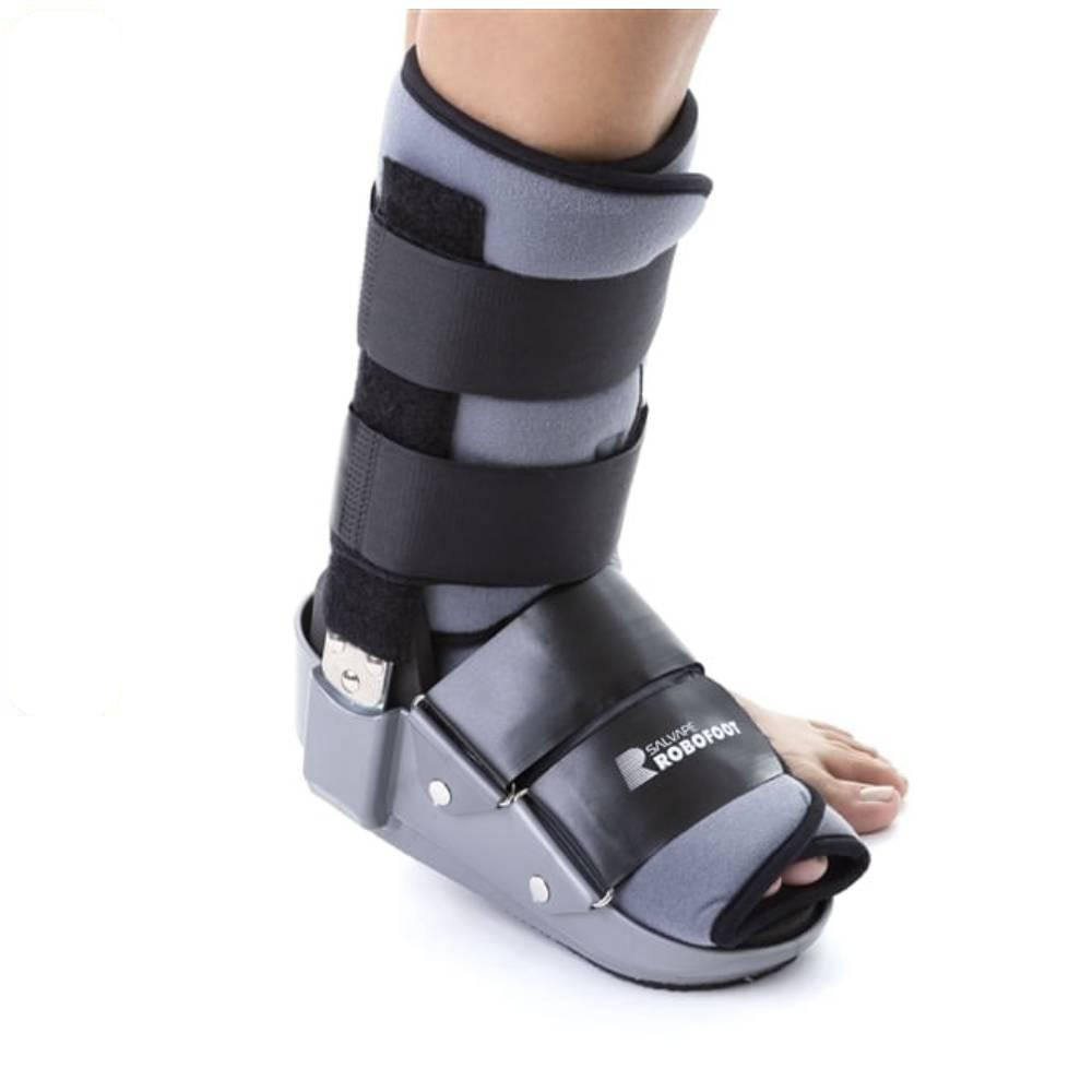 A Bota Imobilizadora Robofoot Infantil e Adulta- Salvape é um produto leve e muito confortável, possui forro interno de espuma que envolve o tornozelo e pé. Com suporte rígido para panturrilha, tornozelo, pé e design anatômico com baixo perfil para facilitar a marcha