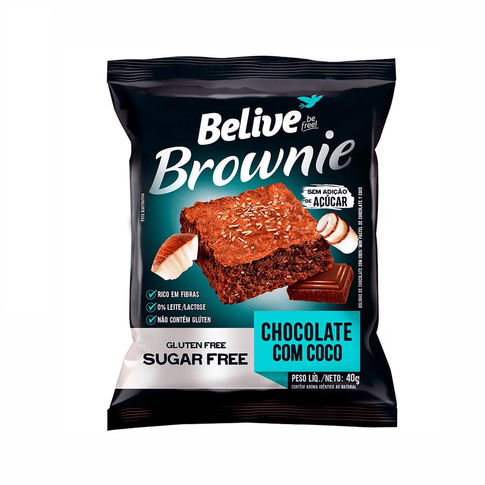 O Brownie Chocolate com Coco Belive 40g é um bolinho saboroso sem adição de açúcar, adoçado com stévia. Possui adição de fibras consideradas prebióticas, não contém leite e glúten. Sugestão de consumo: Pronto para o consumo, é uma ótima opção de bolinho que pode ser consumido na escola, na academia, no trabalho ou em qualquer outro lugar a qualquer momento do dia.