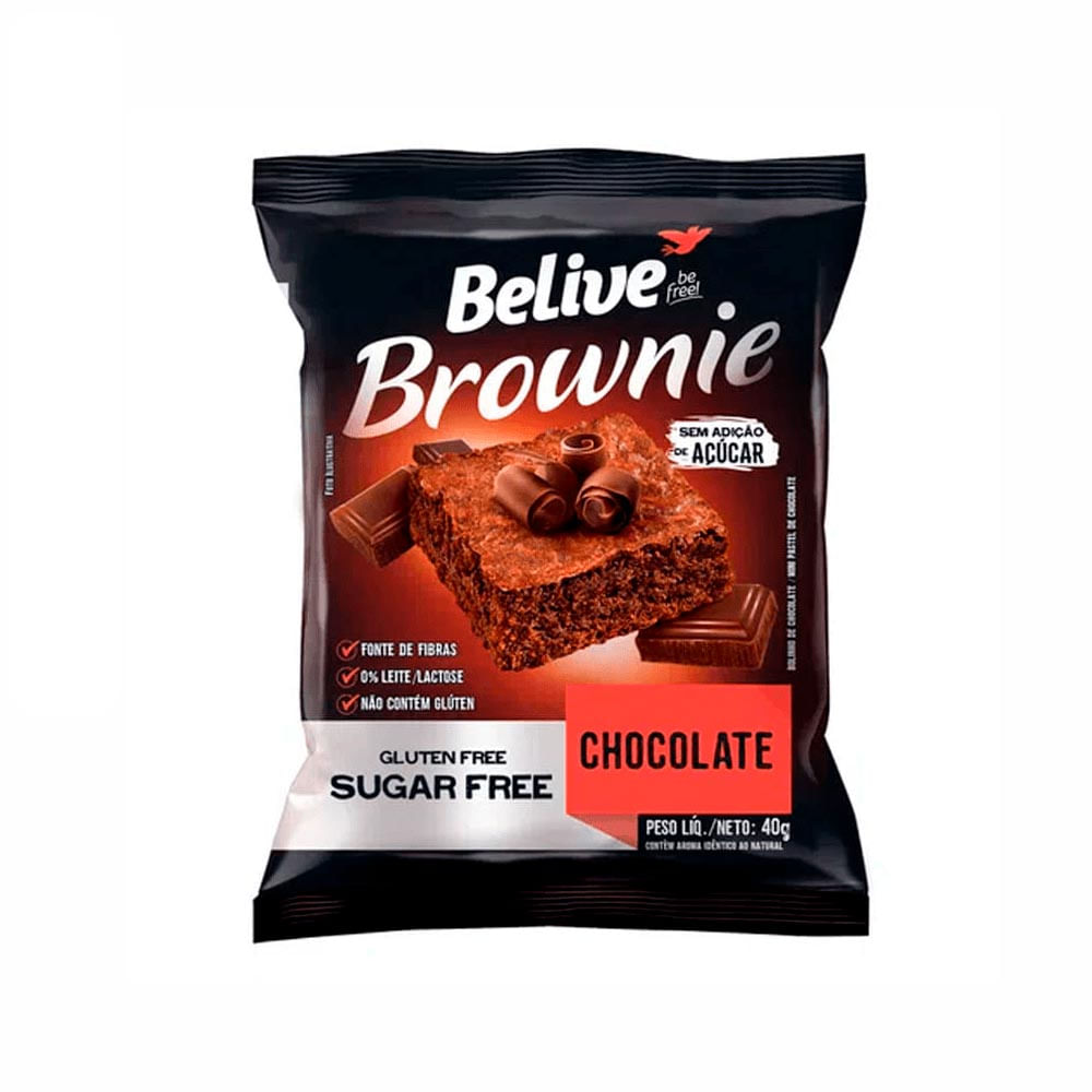 O Brownie Zero sem Glúten Chocolate Belive 40g é uma deliciosa e saudável opção para os lanches da tarde. É um brownie feito com cacau em pó e adoçado com Stevia. Não contém Glúten, pois são feitos com farinha sem glúten (farinha de arroz) além de não conter lactose.