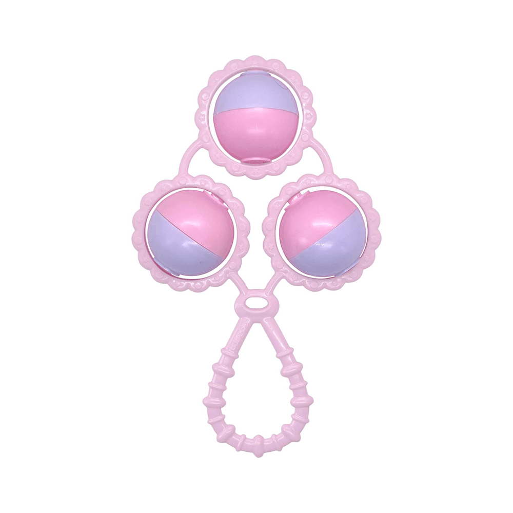 Chocalho De Bebe Rosa Infantil Menina 3 Bolinhas Tradicional