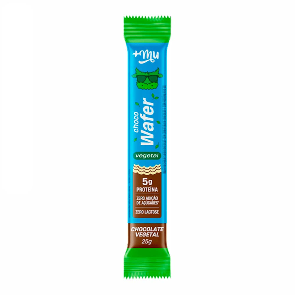 O Choco Wafer chocolate vegetal, da +Mu é elaborado com proteína vegetal e sem adição de açúcares, um docinho crocante, saudável e muito gostoso.