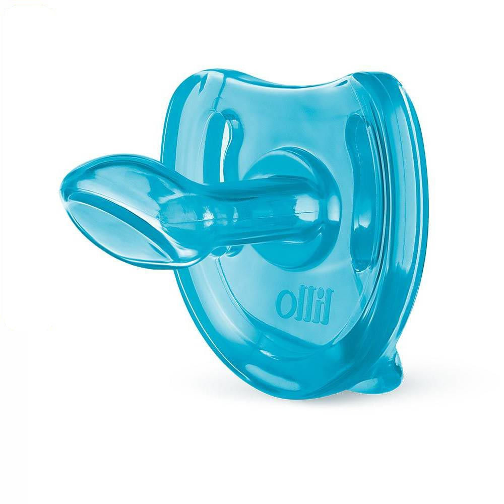 - Chupeta projetada em peça única de silicone macio e flexível, com formato ergonômico e bordas arredondadas