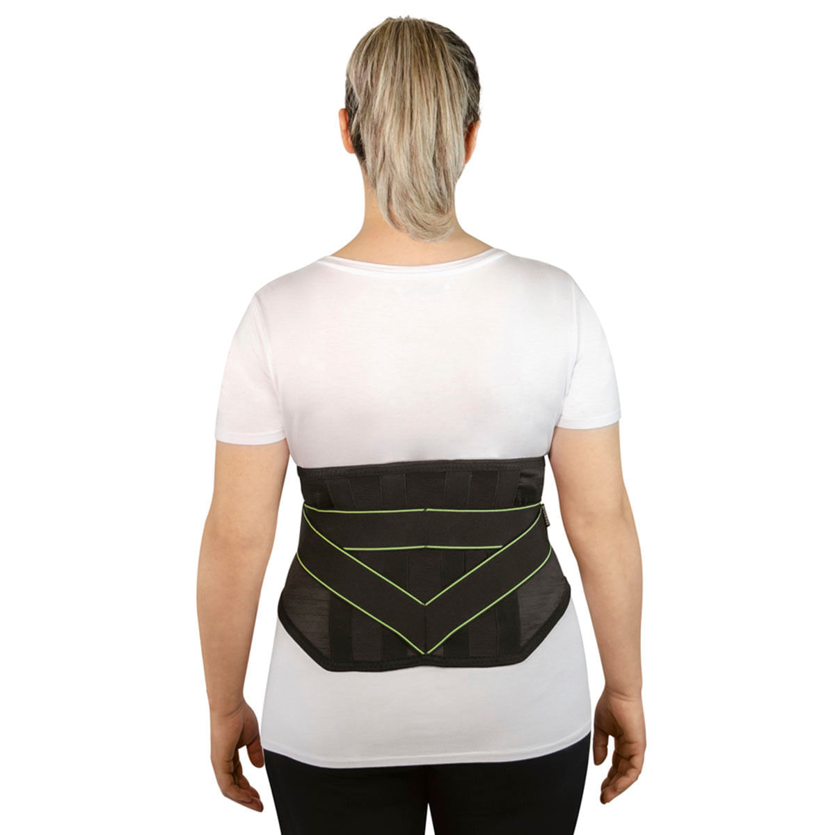 - Cinta lombar com hastes e ajuste duplo para estabilização da região lombossacral