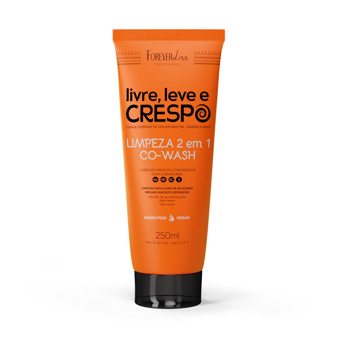 O Co-Wash 2 em 1 Livre, Leve e Crespo Forever Liss é um lançamento completamente inovador e ideal para o cuidado diário de cabelos crespos. Além de limpar de forma delicada e eficaz, o produto garante brilho e maciez extrema para cabelos de curvaturas 4 e 5. Ideal para cabelos secos e quebradiços, o co-wash fortifica a fibra capilar, garantindo ainda mais hidratação e um aspecto saudável para os fios. Através de ativos naturais como o Extrato de Groselha Negra, Óleo de Argan, Óleo de Amla e Óleo de Neem, é possível potencializar o cuidado capilar sem o uso de surfactantes e sem agredir os fios. Um produto 2 em 1, fornece a função de shampoo e condicionador ao mesmo tempo, graças a uma formulação exclusiva que proporciona alto poder desembaraçante, conferindo um aspecto saudável para os cabelos crespos. Conte com essa novidade para facilitar o dia a dia e garantir o que seus fios mais precisam!
