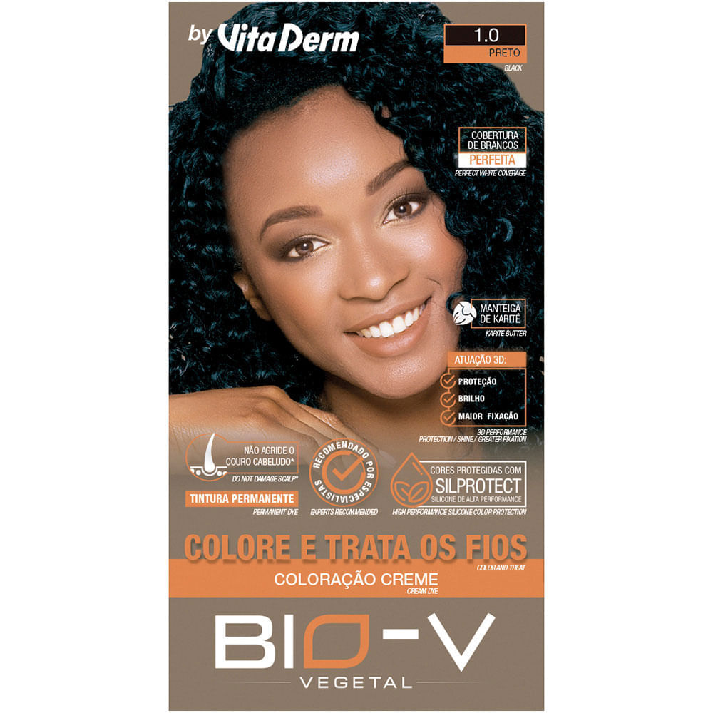 Coloração Creme Bio-v Vita Derm 1.0 Preto 60g