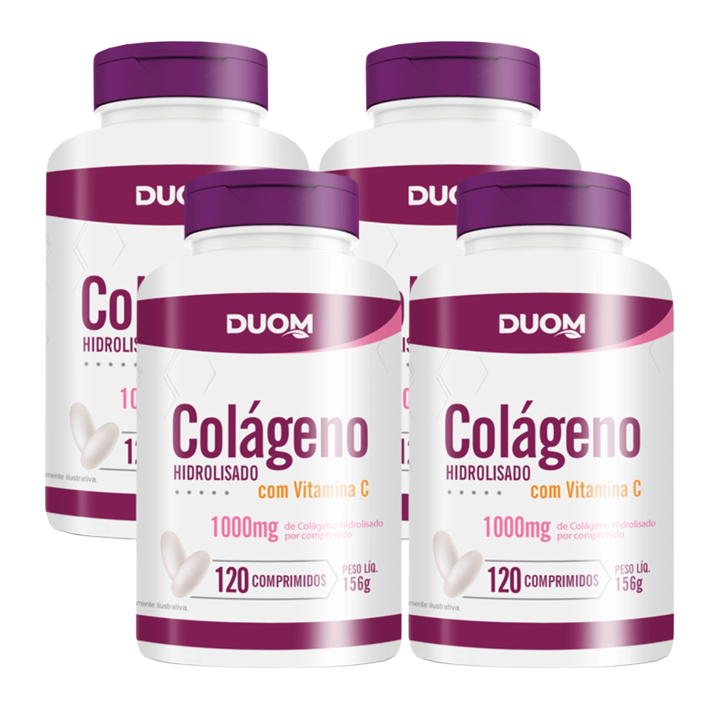 Itens do anúncio: 4 unidades do produto Colágeno Hidrolisado com Vitamina C 1000mg – 120 comprimidos – Duom. Total: 480 comprimidos.