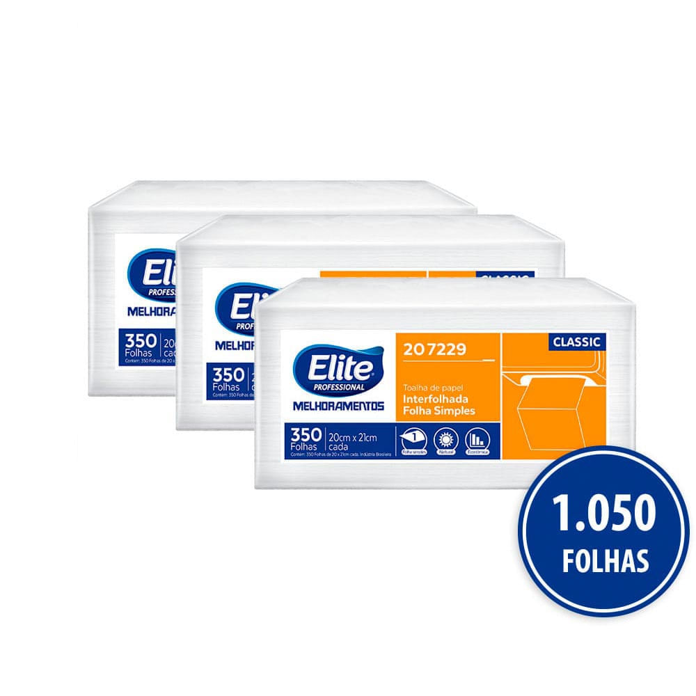 Combo Papel Toalha Classic Interfolhas Folhas Simples Elite Professional 3x350 Folhas