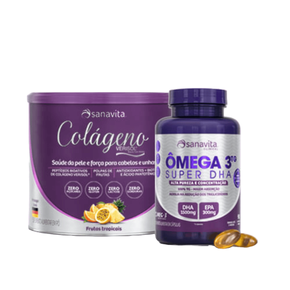 Combo Praticidade Colágeno Verisol 330g + Ômega 3 Sanavita 90 Cápsulas