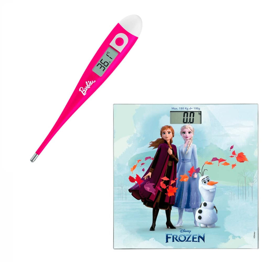 Combo Saúde Balança Digital Frozen E Termômetro Digital Barbie Multilaser Saúde Hc099k