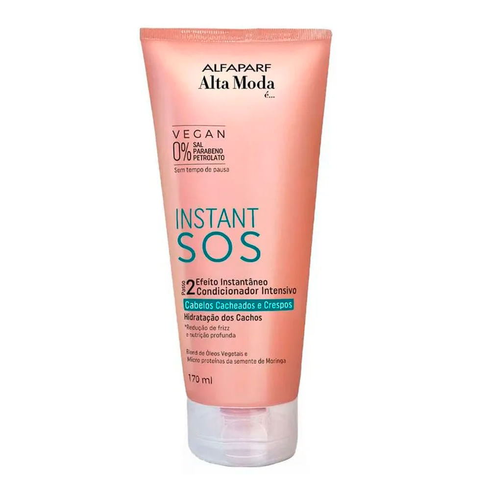O Condicionador Alta Moda Sos Instant Cachos 170ml é formulado especificamente para cabelos cacheados e ondulados.
