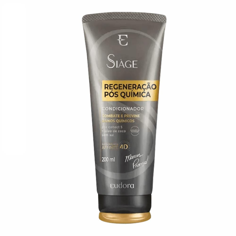 O Condicionador Eudora Siàge Expert Regeneração Pós Química faz parte de uma linha assinada pelo expert Marcos Proença e apresenta o complexo tecnológico Pro Connect 5 + Óleo de coco que proporciona o religamento das pontes capilares dos fios ressecados e quebrados por agressões químicas.
