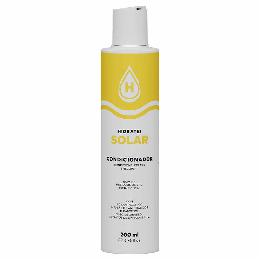 Com um blend exclusivo de óleos e ativos nutritivos, o Condicionador Solar Hidratei é essencial para manter os fios protegidos contra os danos do sol, sal e cloro. Sua fórmula age selando instantaneamente a cutícula capilar, devolvendo maleabilidade, leveza e um brilho natural aos cabelos, enquanto previne danos futuros.