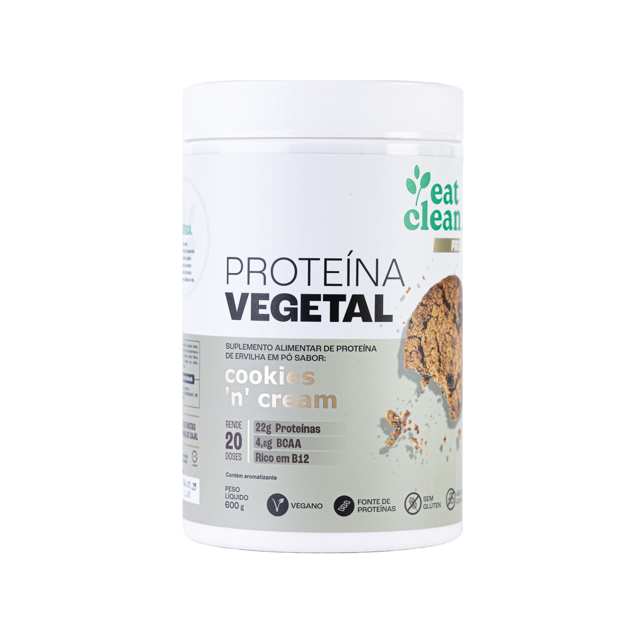 PROTEÍNA VEGETAL COOKIES 'N' CREAM é uma opção perfeita para quem busca uma proteína vegetal com textura e sabor incrível. Ela é feita de proteína de Ervilha, oferece um perfil completo de aminoácidos e também é enriquecida com todas as vitaminas do Complexo B, incluindo 100% da dose de Vitamina B12. Sem textura de areia, com pedacinhos de cookies e sem lactose.