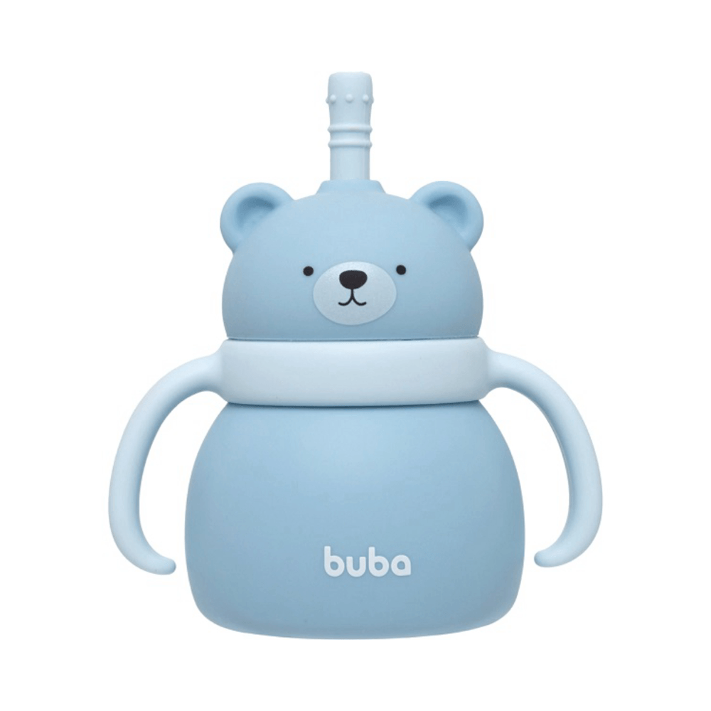 Copo Em Silicone Com Canudo Ursinho Buba Azul