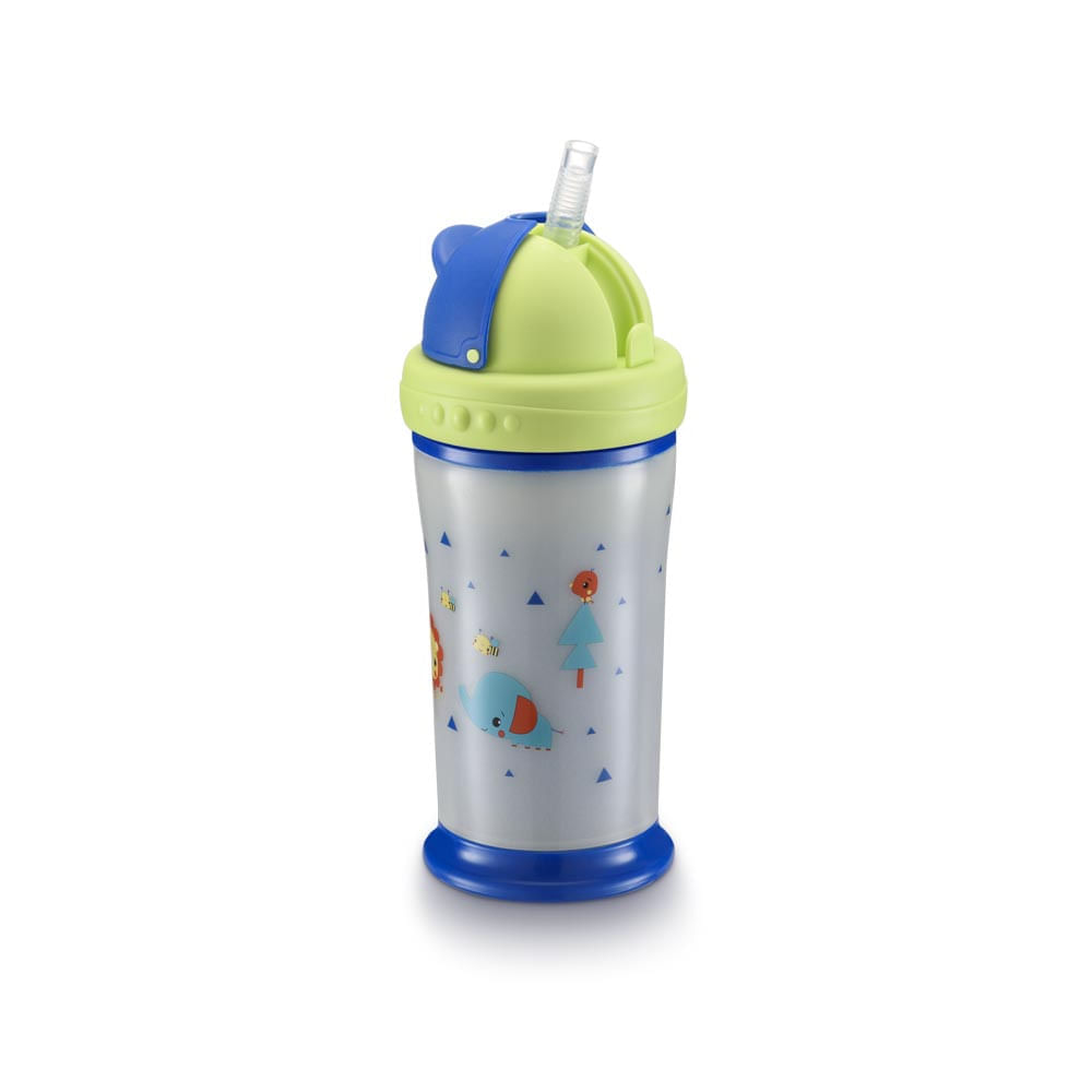 Chegou o item que faltava para acompanhar seu pequeno na hora de dormir! O copo térmico Playful, além de conservar a temperatura da bebida. brilha no escuro. Super fácil de ser localizado durante a noite, ele é a solução ideal para que a criança não precise mais levantar e acender a luz para pegar água ou procurar o copo no quarto. Seu recipiente formado por uma parede dupla impede que o copo transpire mantendo a bebida fria por até 2 horas. e preservando também o móvel em que estiver apoiado. Feito em polipropileno resistente e livre de BPA, ele é à prova de acidentes e por isso é perfeito para acompanhar as crianças durante a noite. Com válvula anti vazamento e capa deslizante. o copo térmico Playful previne bagunças e mantém o canudo sempre limpinho. Além de tudo isso. com poucas peças ele é simples e fácil de montar e lavar. podendo também ser levado à máquina de lavar louças.