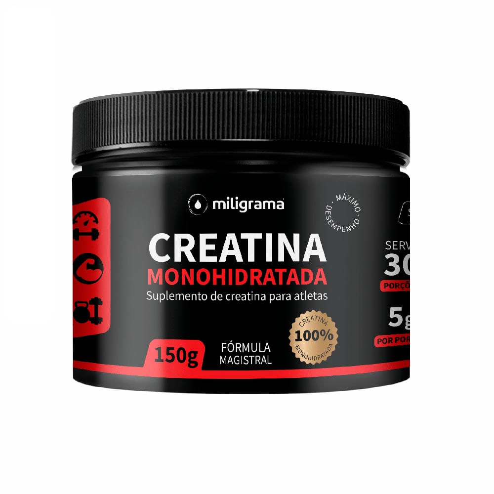 Creatina Monohidratada 100% Pura da Miligrama é um suplemento ergogênico que estimula o ganho de massa muscular, aumenta a força e potência muscular.