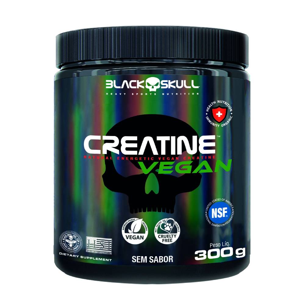 O produto é a Creatine Vegan (300g) - BlackSkull USA. Trata-se de um suplemento de creatina de origem vegetal produzido pela BlackSkull USA.